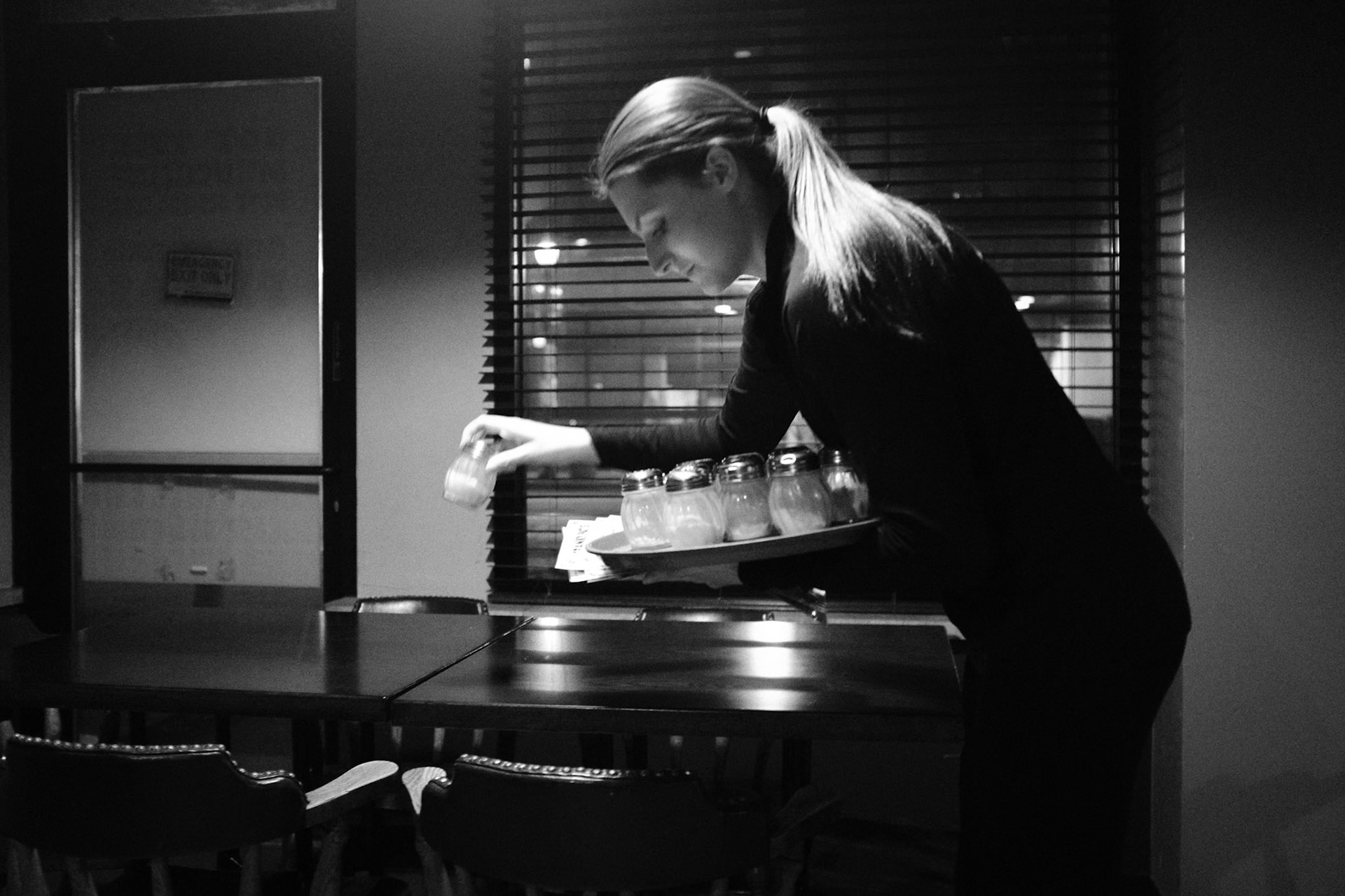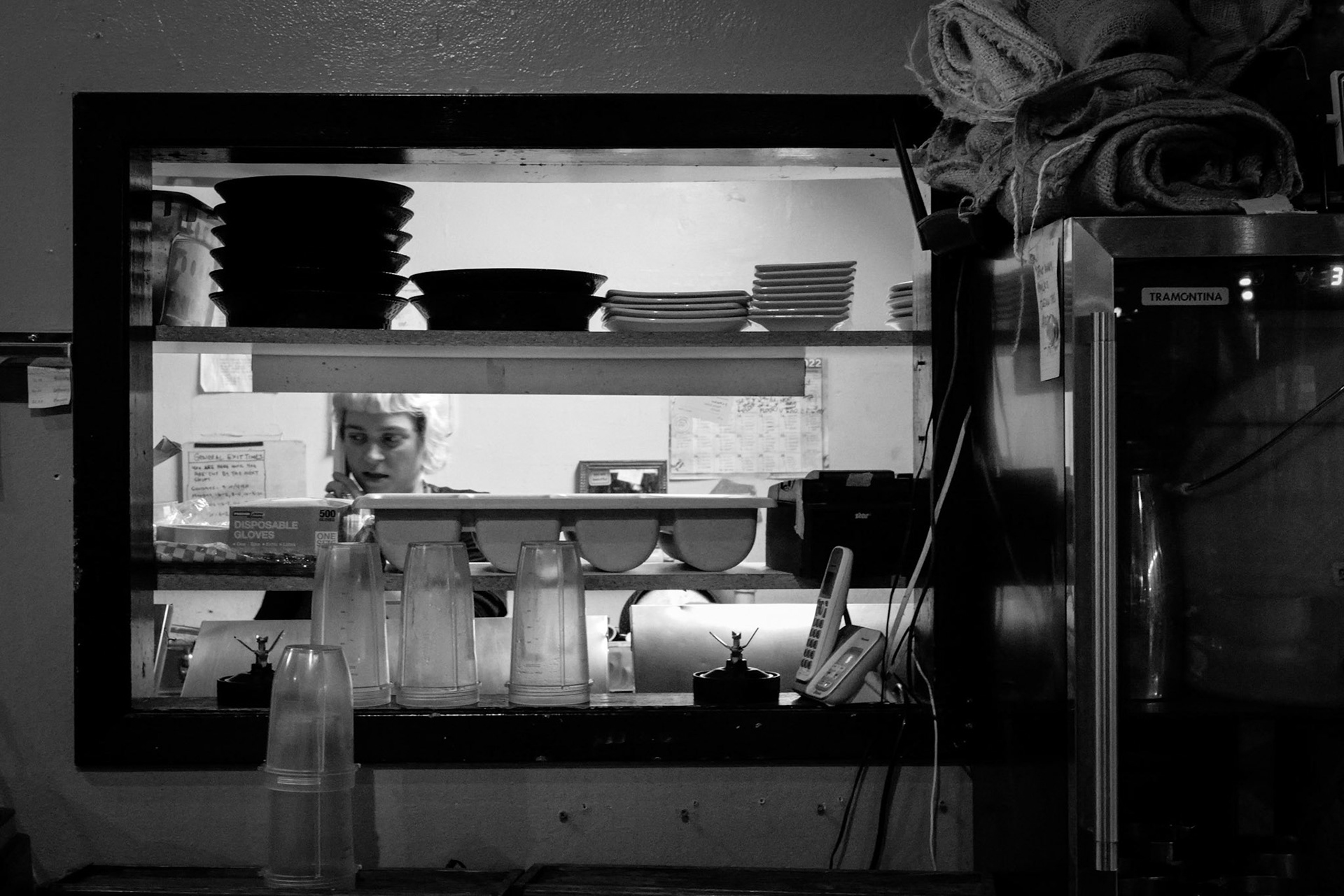 A busy (tired) woman. Tortilla Flats closed early Saturday because they ran out of food. Last day the 28th of March....